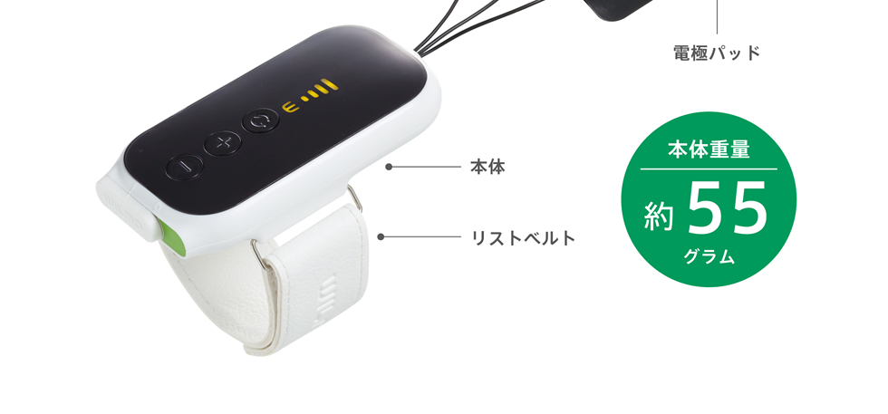 | 本体重量 | 約55g(電極パッドを除く) | ||||||